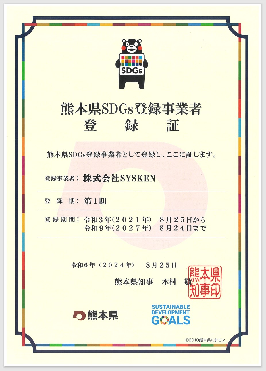第1期「熊本県SDGs登録事業者」に登録しています。