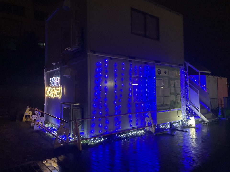 アクアドームでは現在、グループ会社であるSYSKENテクノとJVを組んで音響設備改修工事を実施中です。 そこで工事成績点の高得点を目標に、現場のイメージアップに取り組んでおります。 今回取り組みの一つとして、現場事務所にイルミネーションの取付を行いました。 アクアドームへお散歩に来られる方、帰宅ルートで通られる方などに好評です。 2月いっぱいまでの点灯を予定しておりますので、近くを通られた際はぜひお立ち寄りください! ※点灯時間:18:00~21:00 【工事概要】 案 件 名:(長寿命化)熊本市総合屋内プール音響設備改修工事 発 注 者:熊本市 JV名 称:SYSKEN・SYSKENテクノ特定建設工事共同企業体 工 期:2024年7月24日 ~ 2025年10月17日