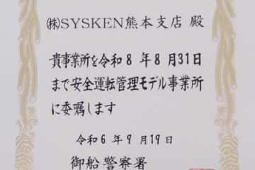 【熊本支店】「安全運転管理モデル事業所」に指定されました